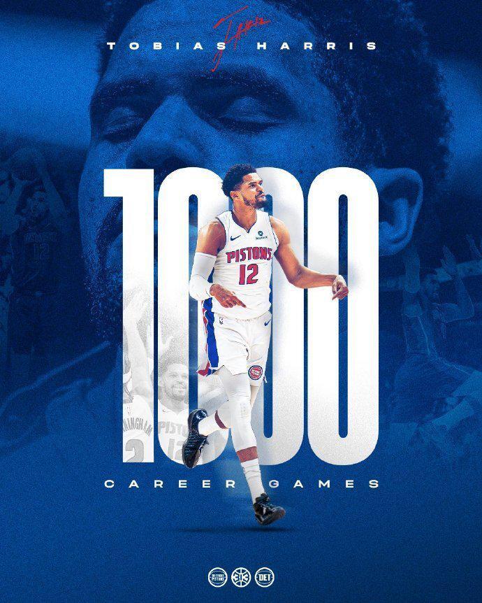 活塞主力哈里斯达成生涯1000场常规赛里程碑,以及达成生涯常规赛16000分里程碑。